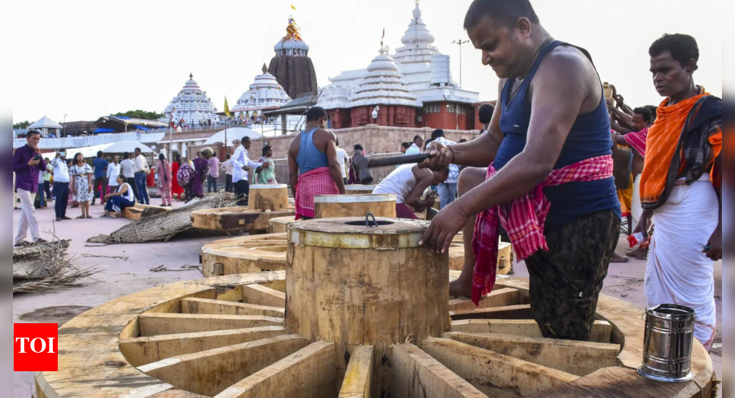 Carpenters and servitors busy in constructing wheels for the chariots of Lord Jagannath, Balabhadra and Devi Subhadra ahead of the…