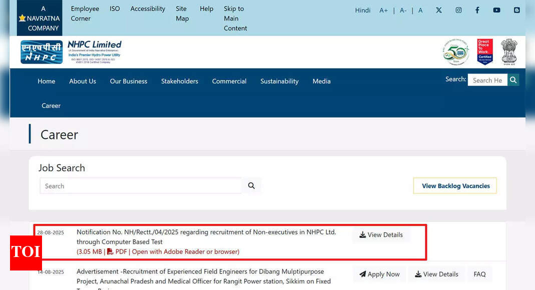 NHPC गैर-कार्यकारी रिक्ति 2025: पात्रता, वेतन, आवेदन शुल्क और चयन प्रक्रिया NHPC भर्ती 2025: नेशनल हाइड्रोइलेक्ट्रिक पावर कॉरपोरेशन (NHPC) ने…