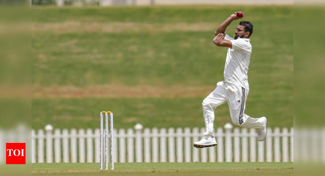 Bengaluru: East Zone�s Mohammed Shami bowls a delivery during a Duleep Trophy 2025 quarterfinal cricket match between East Zone and…