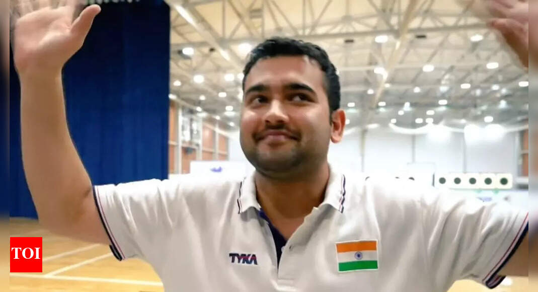 Anish Bhanwala reacts after winning silver medal at the Asian Shooting Championships. (Image: X) Shooter Anish Bhanwala secured a silver…