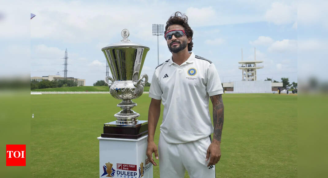 Bengaluru: Central zone’s captain Rajat Patidar with trophy after his team won the Duleep Trophy 2025 final cricket match between…