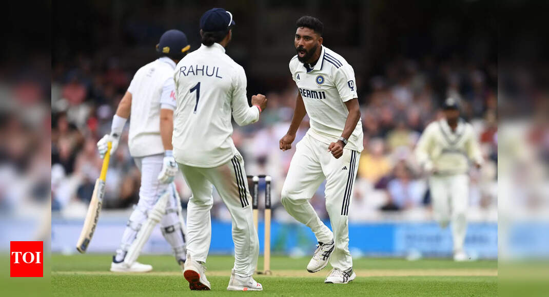 Mohammed Siraj of India celebrates with KL Rahul of India (Photo by Gareth Copley/Getty Images) KL Rahul and Mohammed Siraj,…