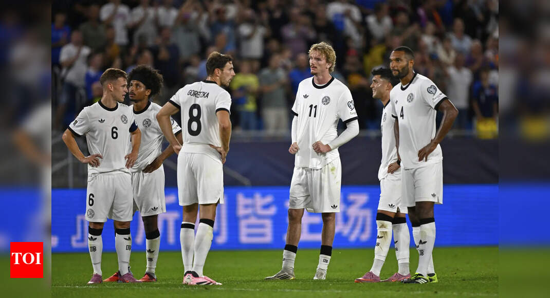 German players stand on the pitch after losing the World Cup Group A qualifying match against Slovakia (AP Photo/Denes Erdos)…