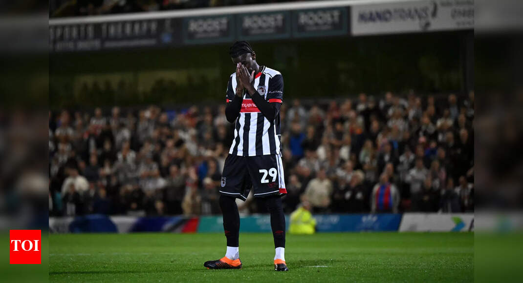 Clarke Oduor of Grimsby Town looks dejected as he misses the team’s third penalty in the penalty shoot out during…