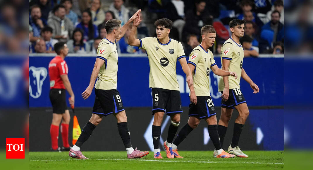 Robert Lewandowski of FC Barcelona celebrates with teammates (Photo by Juan Manuel Serrano Arce/Getty Images) Barcelona secured a 3-1 comeback…