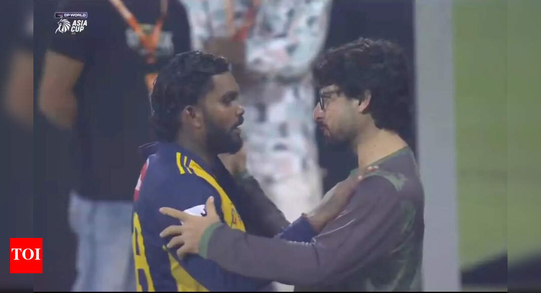 Wanindu Hasaranga (L) and Abrar Ahmed (R) after the Pakistan vs Sri Lanka match in the Asia Cup. (Screenshot) In…