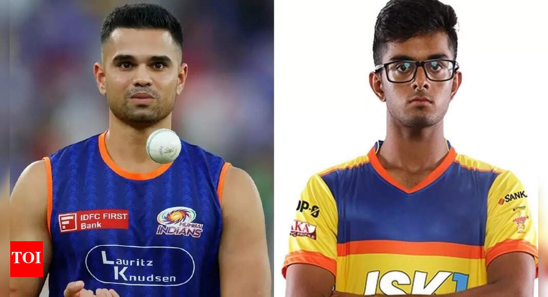 File photo of Arjun Tendulkar and Samit Dravid. In a notable cricket encounter at the Dr K. Thimmappiah Memorial Tournament…