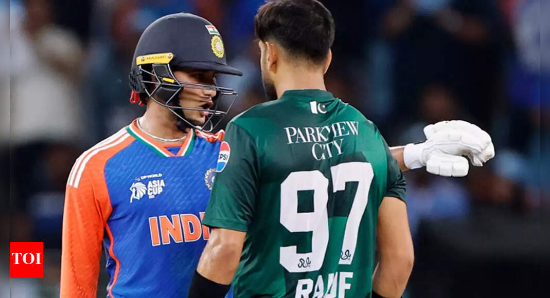 Sahibzada Farhan’s celebration after scoring a half-century became a major talking point from the India-Pakistan game on Sunday (Images via…