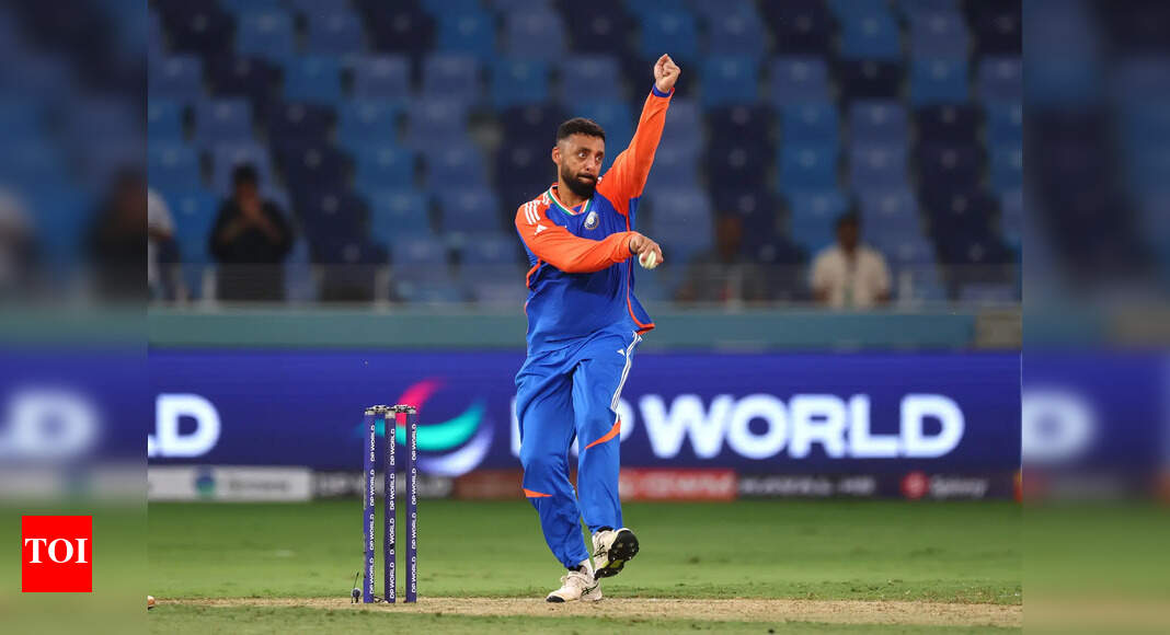 Varun Chakravarthy of India bowls during the Asia Cup match between India and United Arab Emirates at Dubai International Stadium.…