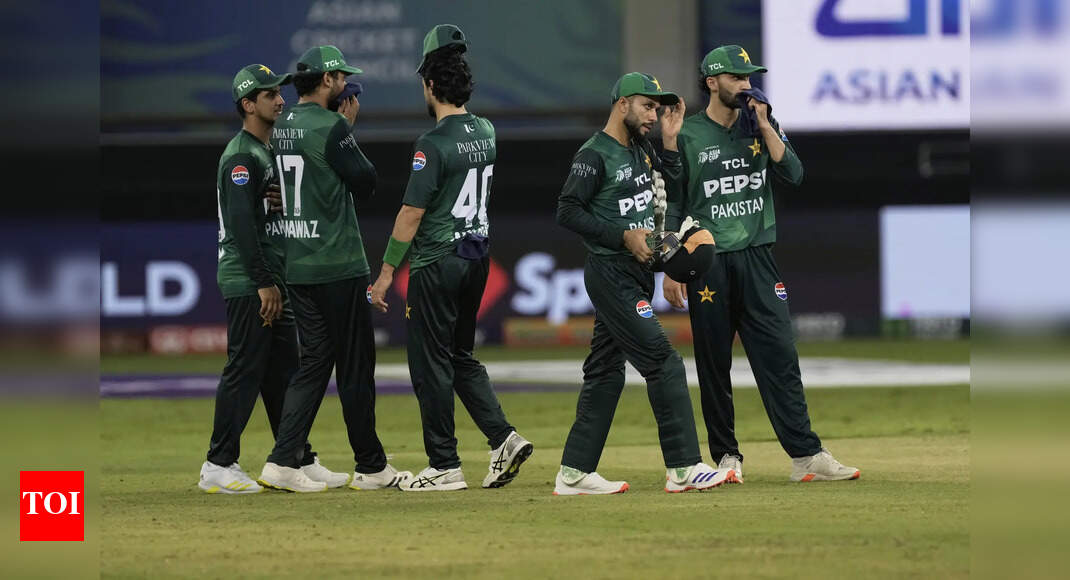 Pakistan players react after their loss in the Asia Cup cricket match against India at Dubai International Cricket Stadium in…