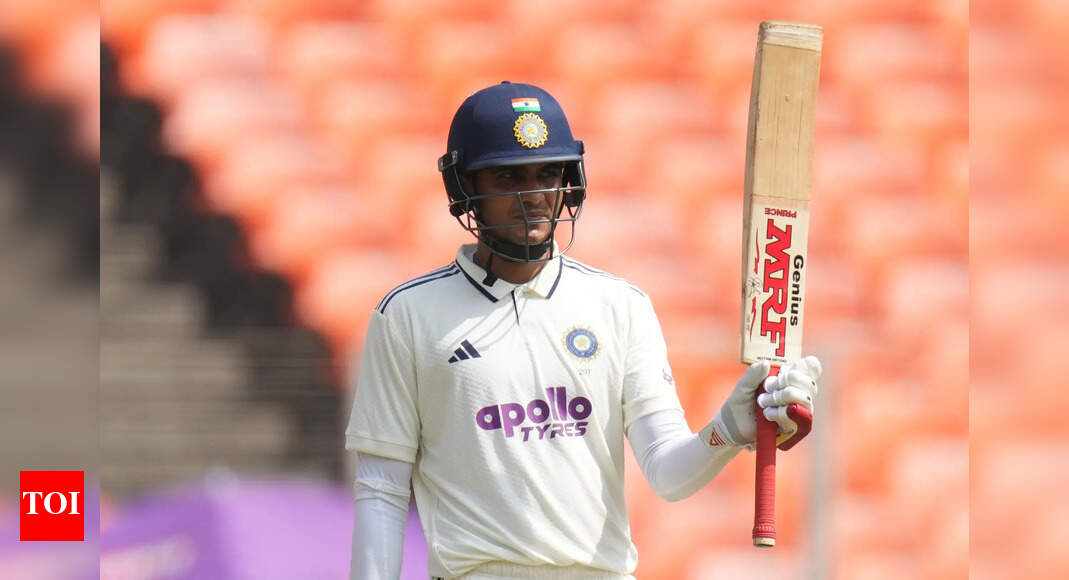 India’s captain Shubman Gill celebrates after scoring fifty runs on the second day of the first Test cricket match between…