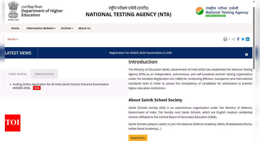 AISSEE 2026 का आवेदन पत्र Exams.nta.nic.in पर जारी; एनटीए जनवरी में प्रवेश परीक्षा आयोजित करेगा एआईएसएसईई 2026: राष्ट्रीय परीक्षण एजेंसी…