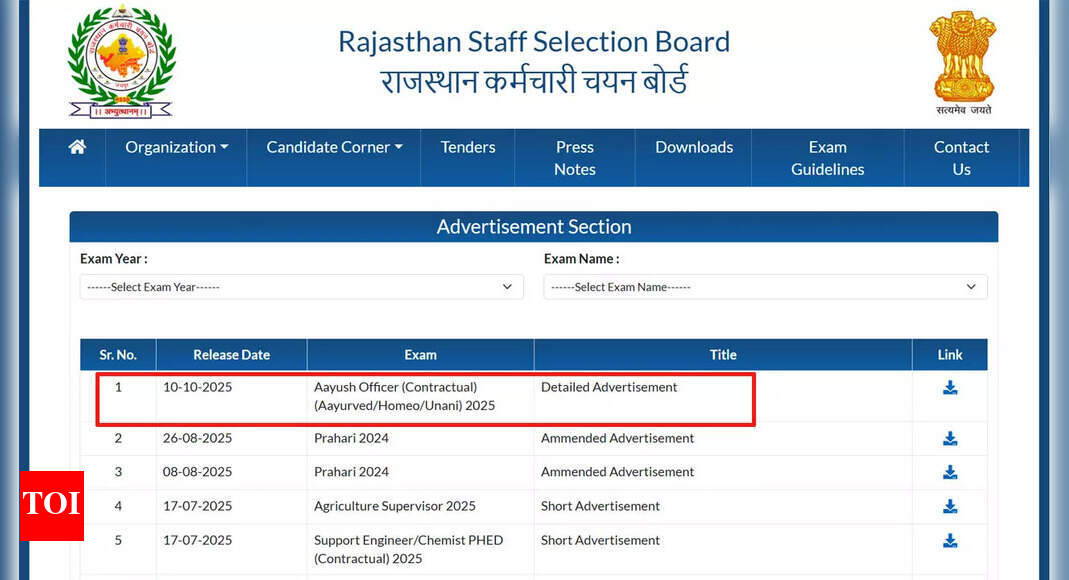 राजस्थान आरएसएसबी आयुष अधिकारी भर्ती 2025, 1535 पदों के लिए आवेदन खुला आरएसएसबी आयुष अधिकारी भर्ती 2025: राजस्थान कर्मचारी चयन…