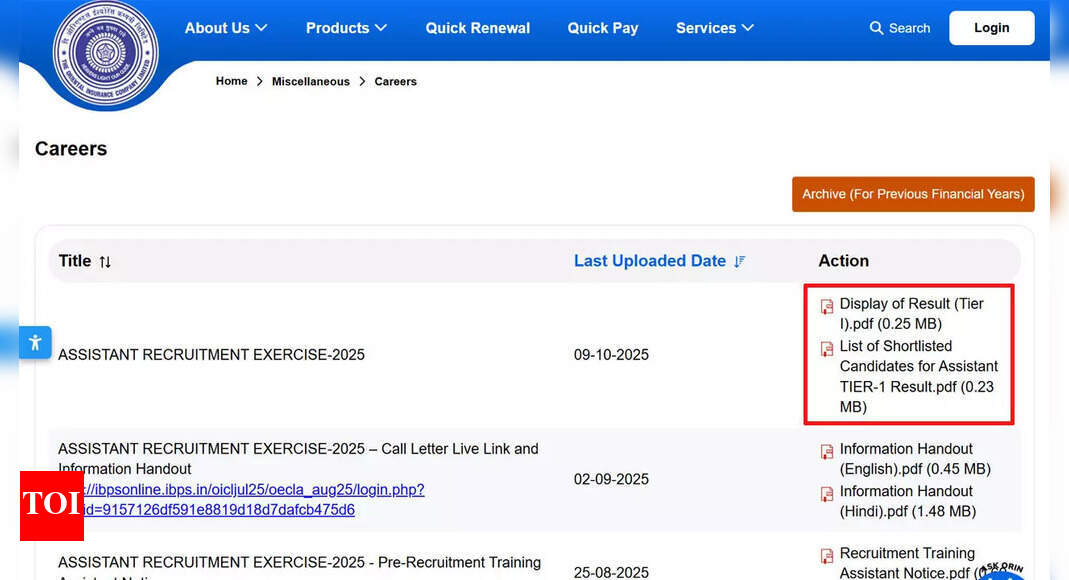 OICL सहायक परिणाम 2025 जारी: टियर I प्रारंभिक पीडीएफ को orientalinsurance.org.in पर डाउनलोड करें OICL सहायक परिणाम 2025: ओरिएंटल इंश्योरेंस…