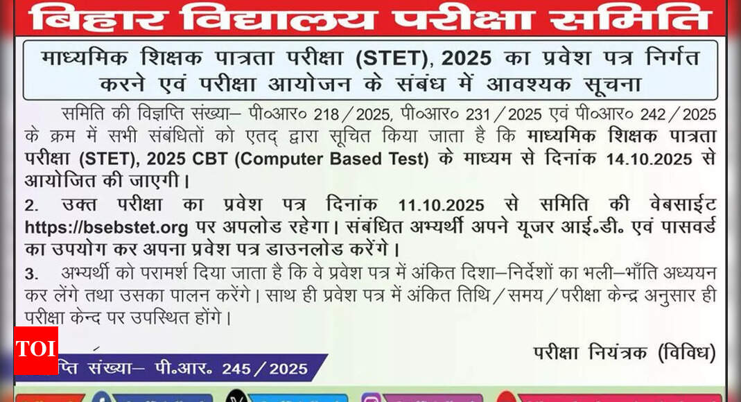 बिहार एसटीईटी एडमिट कार्ड 2025 11 अक्टूबर को bsebstet.org पर जारी होगा Bihar STET admit card 2025: बिहार स्कूल एग्जामिनेशन…