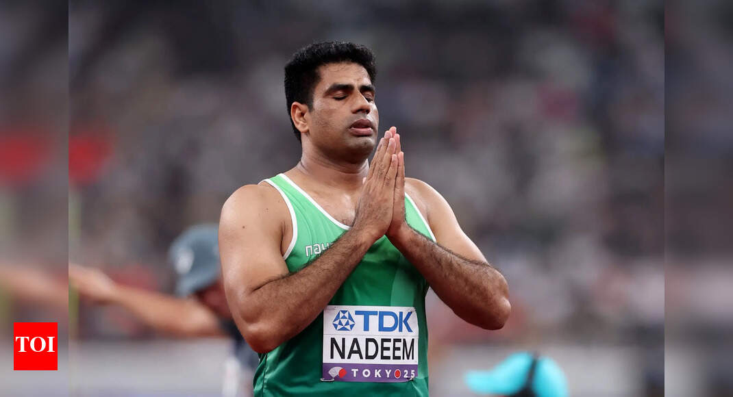 TOKYO, JAPAN – SEPTEMBER 17: Arshad Nadeem of Team Pakistan reacts during the Men’s Javelin Throw Qualification on day five…