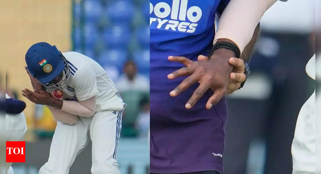 Sai Sudharsan ended up hurting himself after taking a stunning catch against West Indies on Day 2 (Images via AP)…
