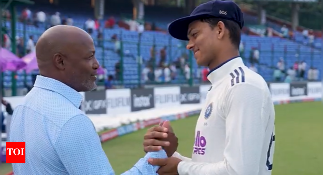 Yashasvi Jaiswal and Brian Lara after stumps on Day 2 (Screengrab/BCCI) Yashasvi Jaiswal produced a sparkling 175 off 258 balls…