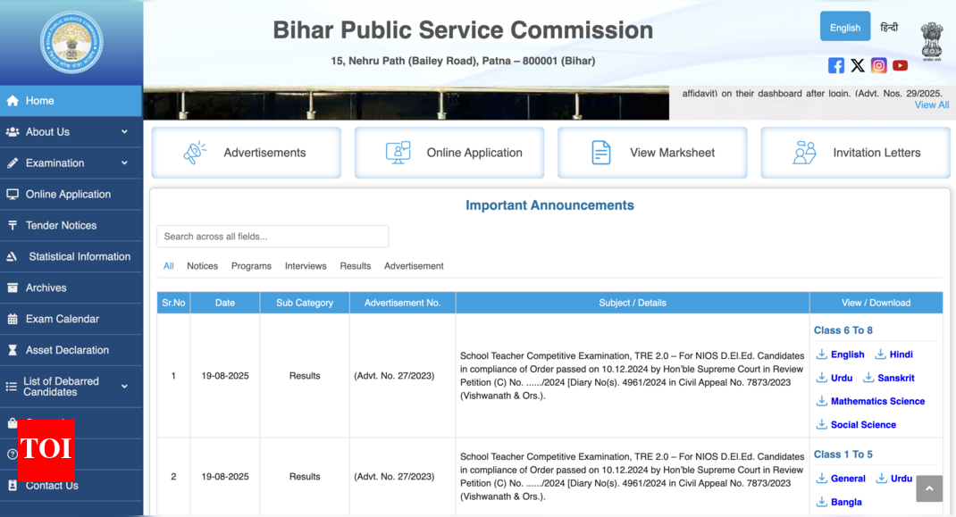 BPSC TRE result 2025 released for NIOS DElEd candidates at bpsc.bihar.gov.in: Direct link to download subject-wise merit list here