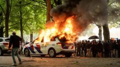Around 1,500 people blocked a highway in The Hague while a police car was also set on fire.