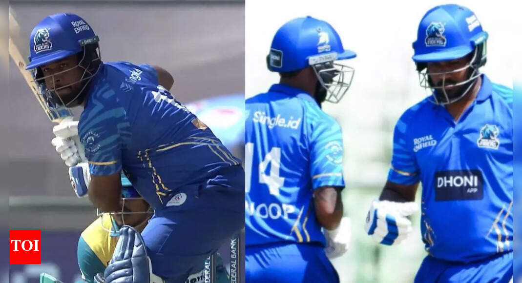 Sanju Samson smashed a half-century once again in the KCL (Images via X/Screengrab) Sanju Samson has kept his explosive form…