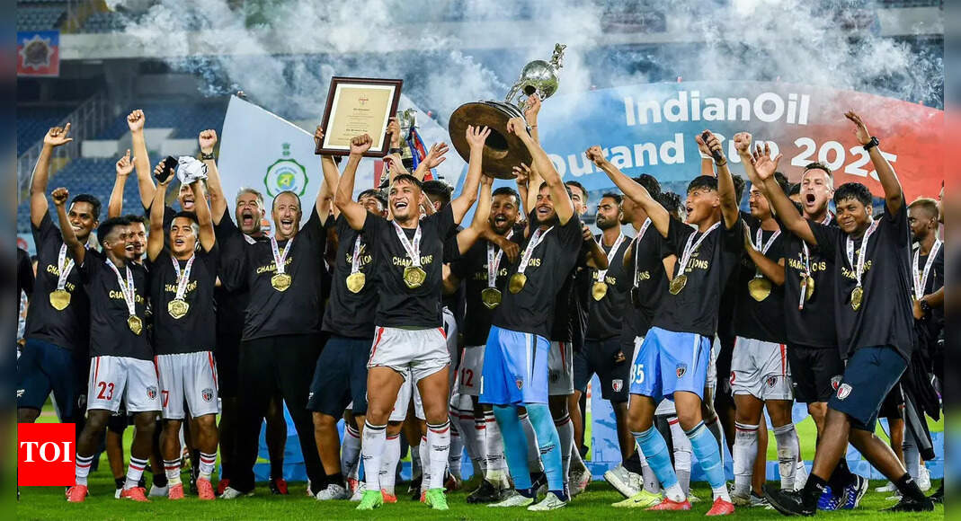 NorthEast United players celebrate with the Durand Cup trophy. (Pic credit: AIFF) Defending champions NorthEast United FC produced a stunning…