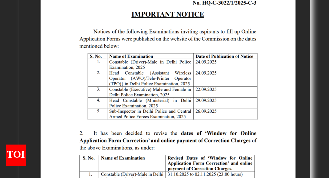 SSC updates Delhi Police exam correction window deadline for Constable, Head Constable, and SI: Check revised dates here